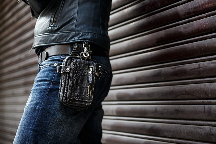 ベルトループはカシメで留めていますので、バッグをベルトに通して着用して下さい。