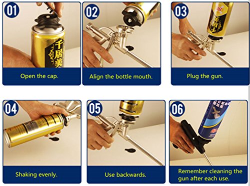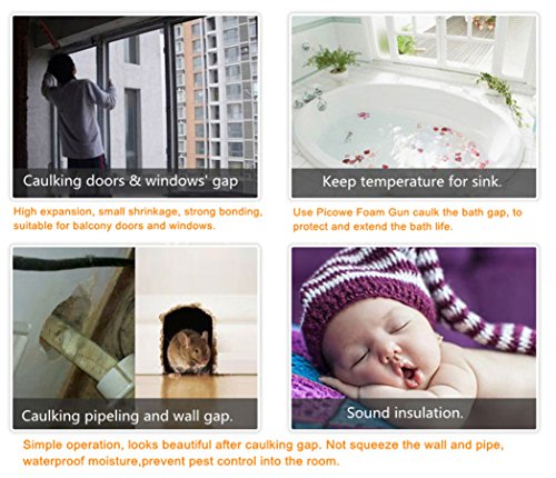 Foam Gun, Picowe Foaming Gun Pu Expanding Caulking Gun Metal Body Pro Heavy Duty PU Foam Gun Grade Expanding Spray Application Applicator