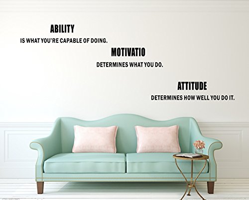 Inspirational Quote Wall Decals Vinyl Poster , Motivational Quotes Wall Stickers - Ability, Motivation, Attitude Home Office Gym Decor