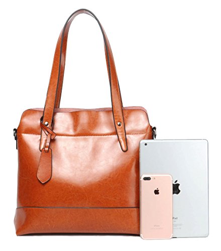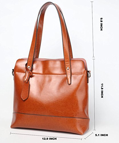 Dreubea Women's Genuine Leather Tote Shoulder Bag Large Capacity Handbag with Strap Upgraded