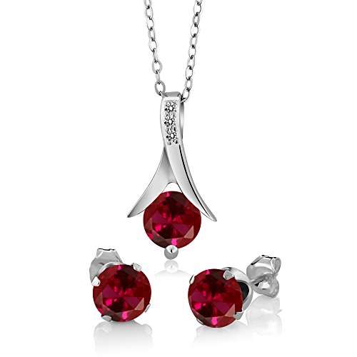 -. Title : 3.05 Ct Red Created Ruby White Diamond 925 Sterling Silver Pendant Earrings Set