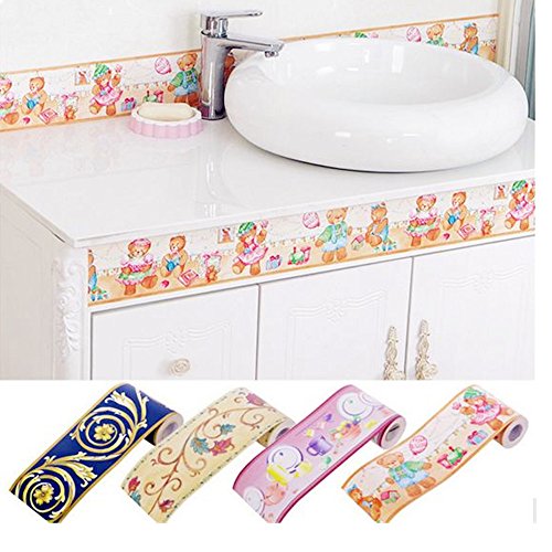 -. Feature : You can position borders at the top of the wall to frame a room, above below the chair rail, bathroom kitchen or make vertical stripes to create an elegant look. / Material: PVC ; Waterproof, adhesive-backing, easy to peel & stick to dry flat surface.Size:3.9 inch wide x 393 inch long (10cmx10M). / Because of different batch's tiny color difference, Please buy enough rolls at a time. / Wallpaper border is a perfect gift for friend or family who enjoy decorating their homes. / Self-adhesive wall border, with sticky adhesive on the backside.Easily cut with scissors or razor knife.