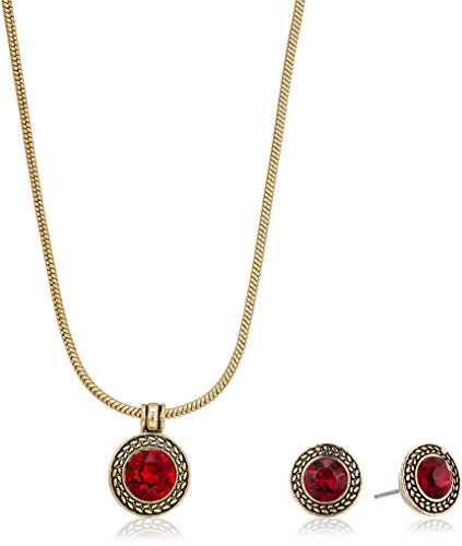 -. Title : Napier Gold-Tone And Red Swarovski Necklace Earrings