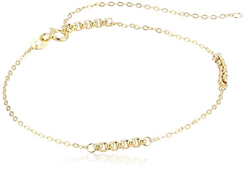 -. Title : 14k Yellow Gold Italian Rolo and Box Chain Link Station Anklet, 9"