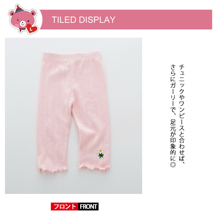 | 花柄刺繍とフリルの透かし模様が入ったオシャレなレギンスですコットン素材なので、薄手でさらっとして夏でも快適♪チュニックやワンピースと合わせば、さらにガーリーで、足元が印象的に◎シンプルで組み合わせやすいさり気なく足元をオシャレに演出 | |