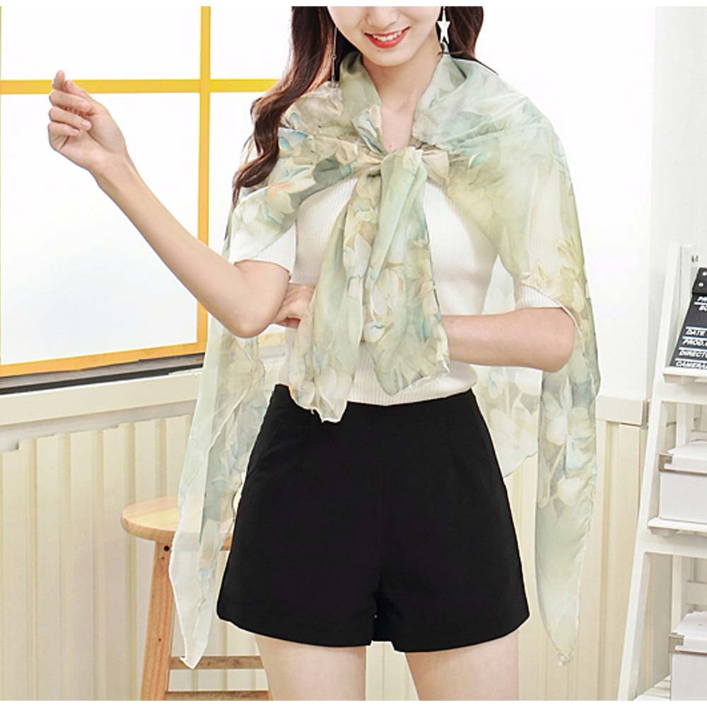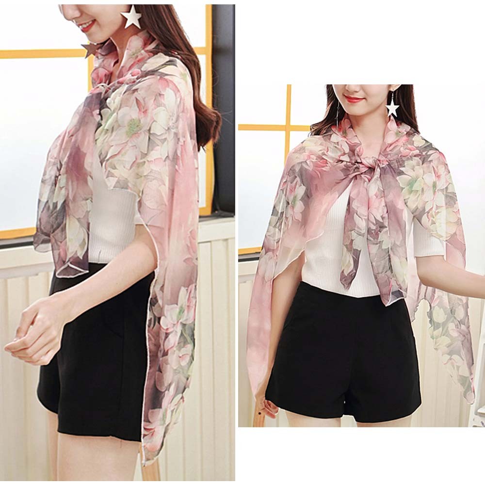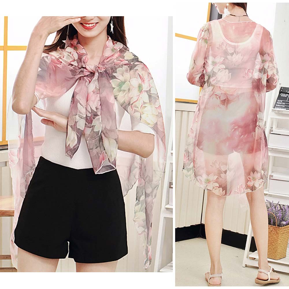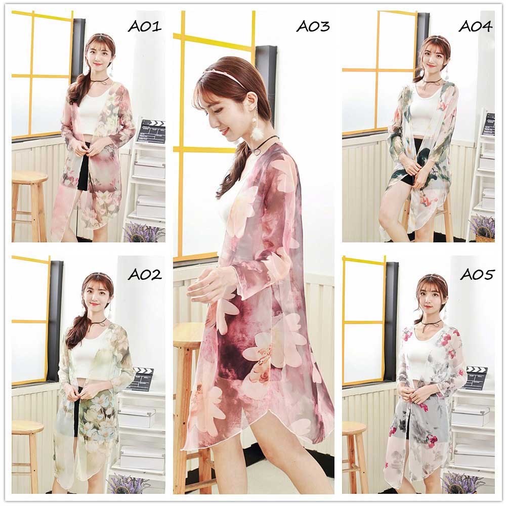 大ぶり花柄プリントが可愛いロング丈シースルーシフォンカーディガン