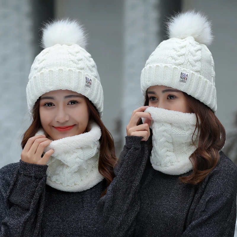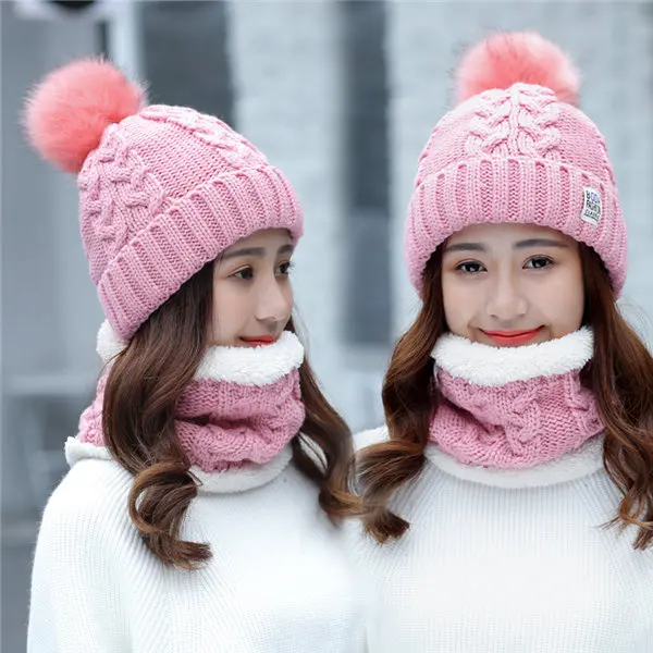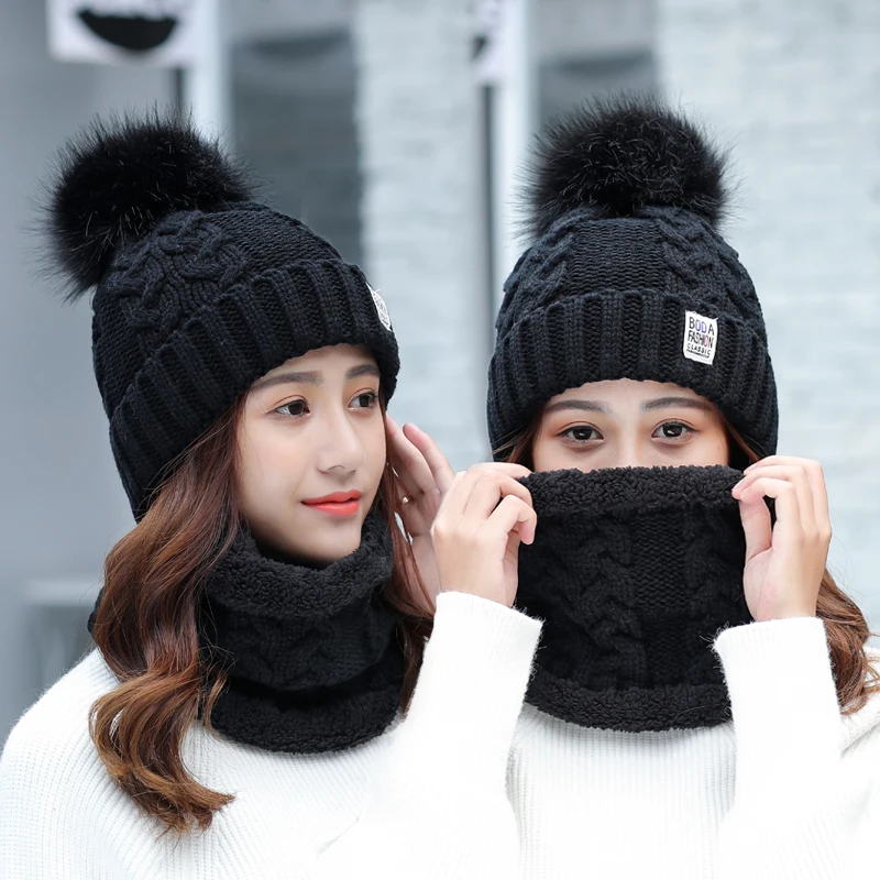 Pattern type:: Solid color Knitted Cap hats and scarf & masks sets winter women's hat