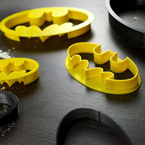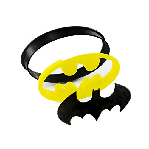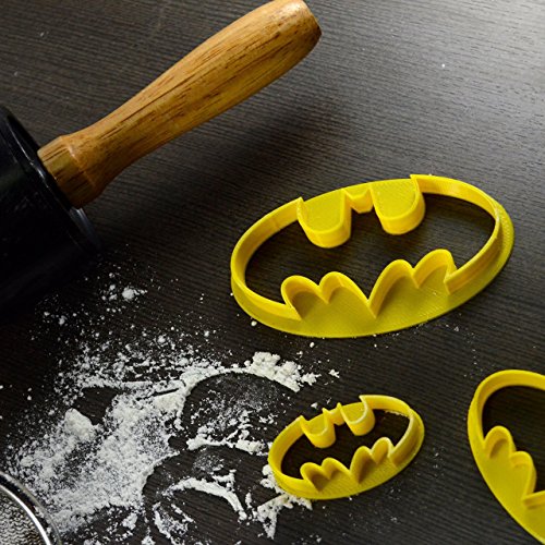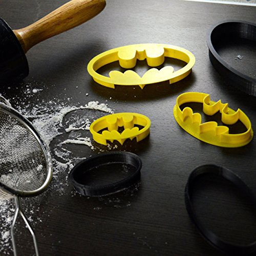 - YELLOW AND BLACK BATMAN COLORS ARE SURE TO IMPRESS: All cookie cutters come in iconic yellow and black Batman Logo colors. These cookie cutters make great party gifts and toys for the little ones. Whether you're making cookies, or batman shapes out of Play-Doh, the durable design helps keep the full shape of your favorite Superhero