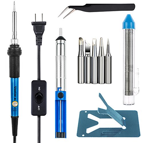 Vastar 60W 110V Adjustable Temperature Welding Soldering Iron Kit with ON/OFF Switch, 5pcs Different Tips, additional Solder Tube and Stand for Variously Repaired Usage