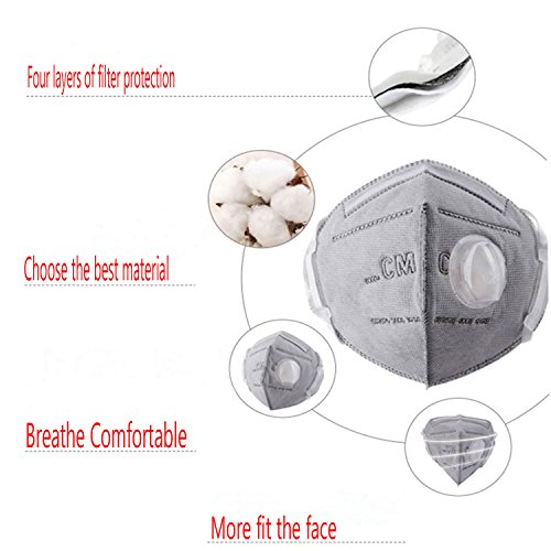 -. Feature : BREATHE VALVE---this mask has breathe valve,so when you wear it,it won't feel hot. / KN95 FILTER COTTON---on 0.3 micron particulate filtration efficiency of ≥95% / PE+SPONGE:Built-in nose cilp, adjustment gap,more fit the face,and can to prevent wearing glasses lens fog / USE FOR:protection in handing and processing of coal,iron ore and minerals including quartz process or automobile,shipbuilding,metallurgy,welding,grinding and other processes by mechanical forces generated 10 times the occupational exposure limit,or in accordance with local regulations the concentration of the following kinds of dust and fog / DO NOT USE FOR:paint spraying and sandblasting applications or for protection against gases and vapors.Do not use in atmospheres containing less than 19.5% oxygen,as this respirator does not supply oxygen