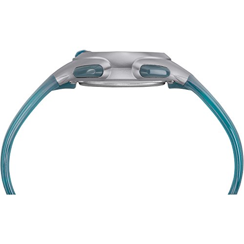 Designed to withstand the pool, ocean, shower and your workout with essential sports timing functions, this digital watch is lightweight and perfect for staying active. This women's Timex Ironman Essential 10 mid-size watch features a blue resin strap, a gray resin case, and an easy-to-read gray digital display. Indiglo night-light aids with readability in low lighting. This watch is water resistant to 100 meters (300 feet).Feature