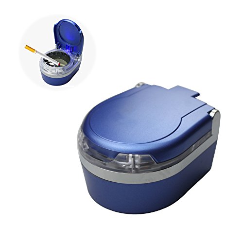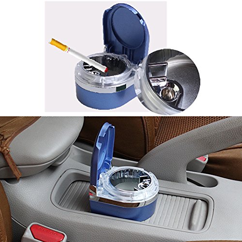 YamaziHD Mini Portable Car Ashtray Blue LED Light for Dashboard Cigar Cigarette (Blue)