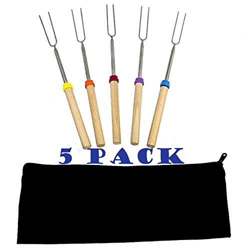 Marshmallow Roasting Sticks- Set of 5- 32 Inch- Extendable STAINLESS STEEL Forks(Comes With Bag), Safe For Kids; Barbecue Forks, Hotdogs, Campfire, Camping, Firepit