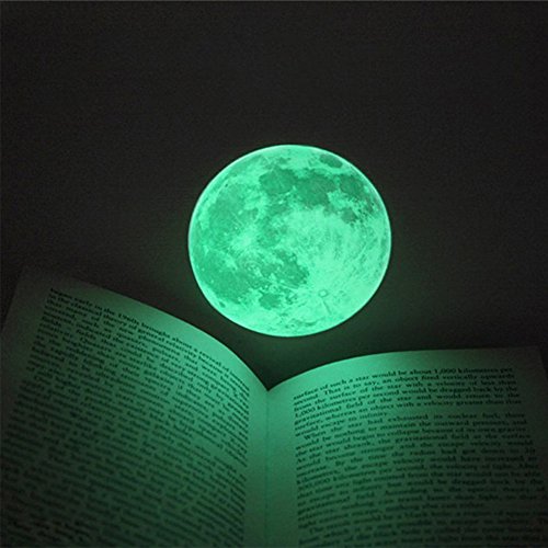 -. Feature : Eco-friendly PVC material,non-toxic and no irritant smell,waterproof and easy to paste. / Creative high brightness Luminous Moon Sticker design,fashionable and personality. / Self-adhensive material,simply peel and stick,easy to install, easy to use,not easy to fall off. / Has the anti mildew, moth, antibacterial, antifouling, decoration, moisture-proof and other functions,multiple use. / The product is only suitable for smooth media,such as glass,metal,dust-free walls and so on.Not suitable for uneven or excessive dust wall.