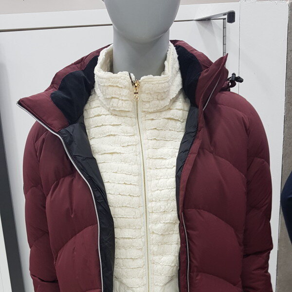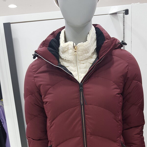 고급스러운 광택의 소재를 사용한 구스다운 여성 자켓몸판의 곡서형 퀄팅과 소매부분 사선형 퀄팅모양으로 포이트를 한층 업그레이한 제품.