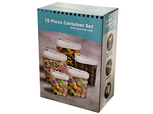 - Perfect for pastas, cereals, coffee beans, snacks, candies and much more, this space-saving 10-piece Nesting Food Container Set with Easy Pour Lids