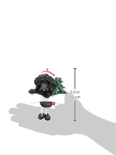 Labradoodle Ornament Black with Unique "Dangling Legs" Hand Painted and Easily Personalized Christmas Ornament