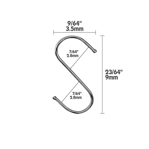 - INDOOR USE: Our S-Hooks offer a nearly endless array of uses for your home. Use them with your closet clothing rod to hang denim jeans, scarves, backpacks, shorts, ties, belts, and other gear or heavy equipment. Useful in the kitchen to hang mugs, pots, and pans from shelving, ceiling dryer racks, or pot racks.