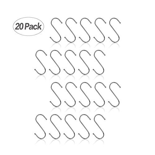 20 Pack Stainless Steel S Hooks, Utility Hooks For Hanging Pots, Pans, Mugs, Clothing, Tools, Planters, Flower Baskets, Wind Chimes, Bird Feeders and More! (Medium)