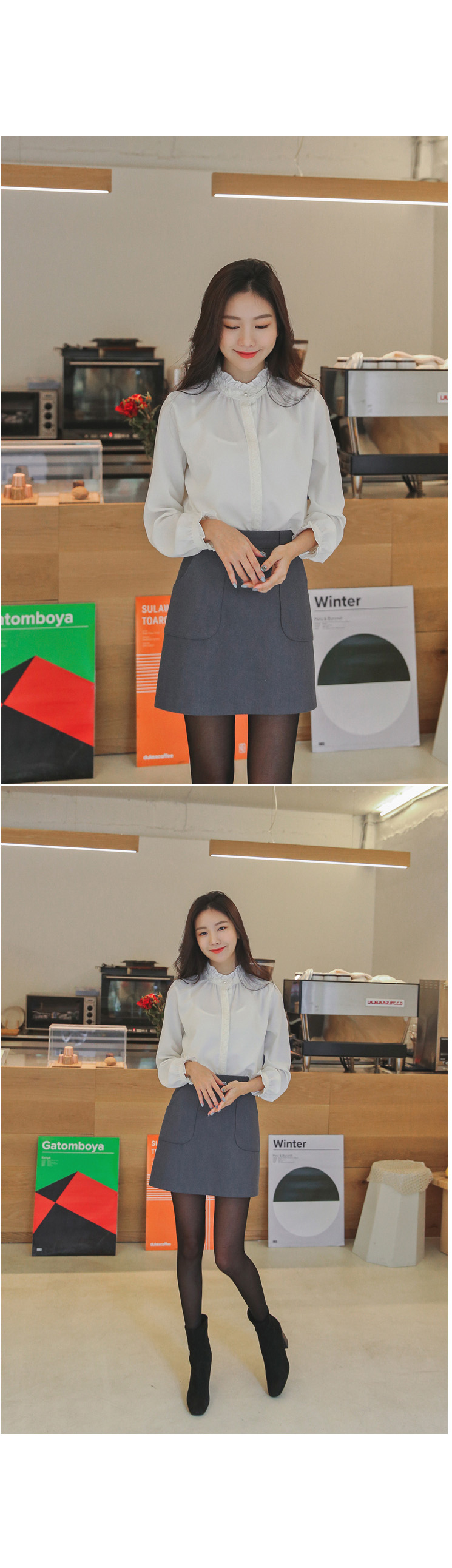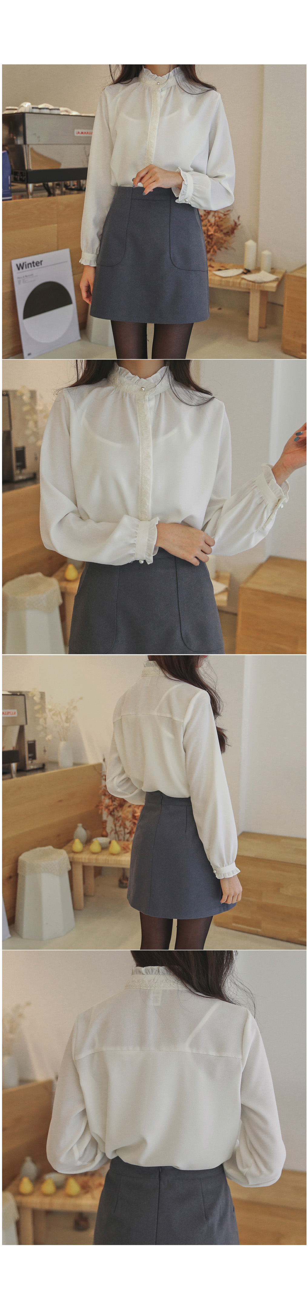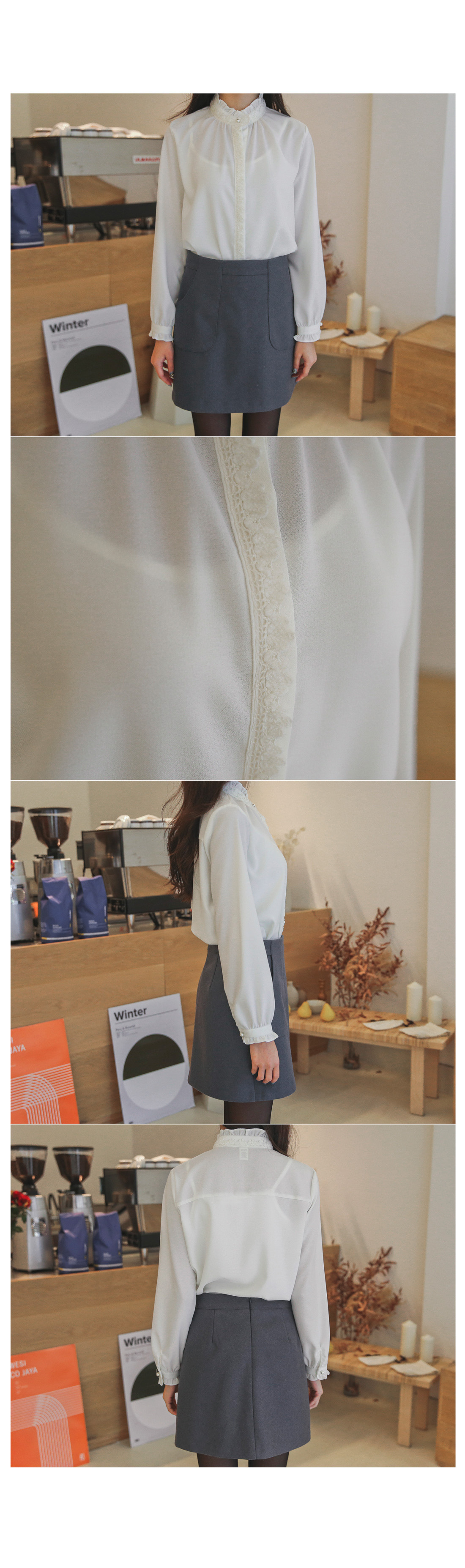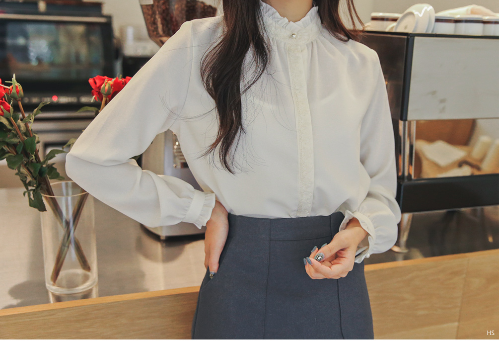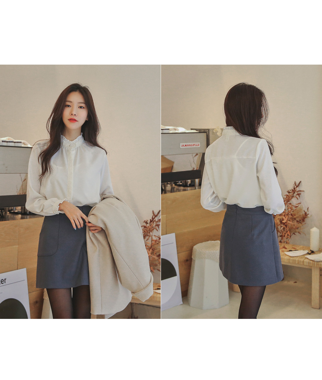 깔끔하고 단정한 느낌의 차이나 카라에 레이스 라인을 더하고