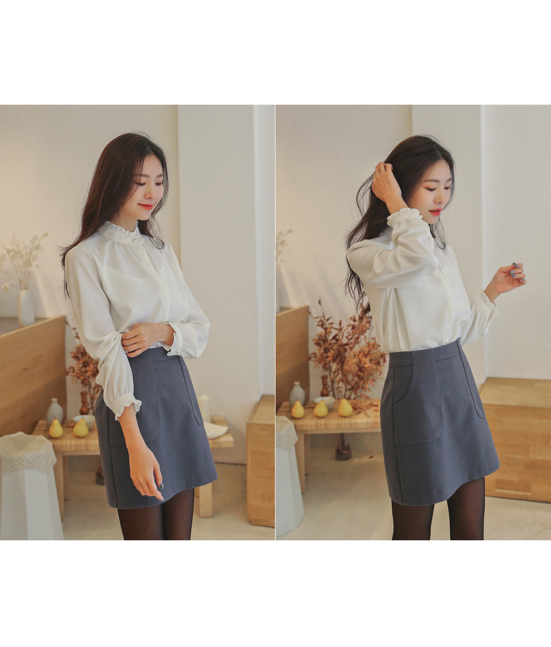 살짝 볼륨감이 있는 퍼프소매에 소맷단도 러플로 되어 우아함까지~
