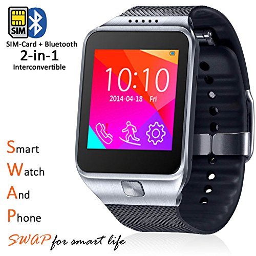 -. Title : Indigi® Unlocked! Smart Watch And Phone -SWAP- Capacitive Color Touch Screen | Time Display | Calls (Answer, End, Reject) | Caller ID | Messaging | Notification | Remote Camera Shutter | Music | Phonebook | Anti-lost Alert | Built-in Mic & Speaker | Ringtone & Vibration | Pedometer | Audio Player | FM Radio| Calender | Alarm | Multimedia | Voice Recorder | Image Viewer | Calculator Sleep Monitor | Phone locator (Silver)
