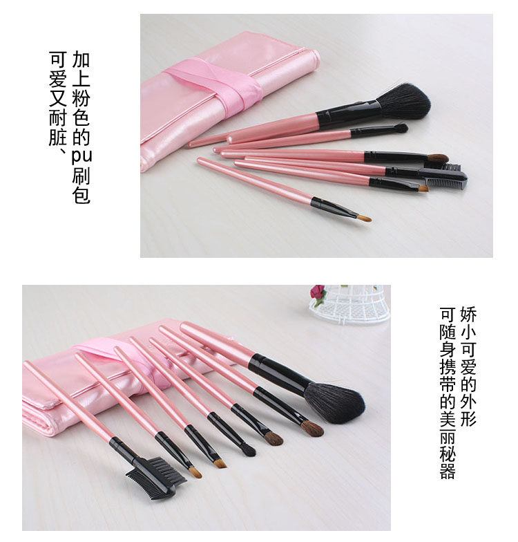 1.大号腮红刷 进口羊毛 吕管+高级木杆 2.粉底刷 进口波丝毛 吕管加高级杆 3.大号眼影刷 纯天然白色羊毛 吕管加高级木杆 4.修饰刷 进eeew口波丝毛 吕管加高级木杆 5.斜头轮廓刷 进口波丝毛 吕管加高级木杆 6..唇刷 进口波丝毛 吕管加高级木杆 7.眼影棒 海绵 吕管加高级木杆
