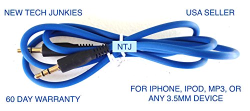 NTJ 3ft (1m) 3.5mm Jack Round Male to Male Stereo Auxillary Cable (Navy Blue)