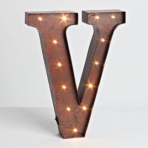 12" - Rustic Brown - Metal - Battery Operated - LED - Lighted Letter "V" | Gerson Wall Decor