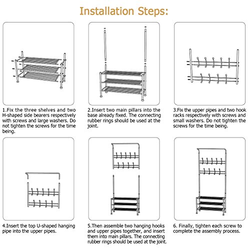 -. Feature : THICK PIPE TO CARRY HEAVY LOADS- Our storage bench for entry way is constructed with an extra size and thick 32mm strong steel pipe to bear the burden of heavy loads. HOMEMAXS storage bench and coat rack set is the wildest size when compared with other storage rack bench. 12"Wx 33"L X 71"H. / KEPP YOUR ROOM WELL ORGANIZED- Our HOMEMAXS storage bench cushion has 22 hook racks, 3 tiers shoe bench and best entryway storage organizer with you can keep your hats, umbrella, key chain, purse, bag, and shoes. You will have more space in your room. Don't you want that? / LARGE SPACE TO KEEP YOUR SHOES- This storage bench entryway has three tier racks that can hold 12 pairs of your shoes. You can use the third tier of this storage bench as a decoration holder to give your room a new look. You can place it on your hall, living room, bedroom and balcony. / ASSEMBLE WITHOUT STRESS- Our HOMEMAXS entryway coat rack set comes with detailed instructions and complete set accessories of the racks. You can adjust the height to suit your taste. / BUY WITH CONFIDENCE- Our HOMEMAXS storage bench hall way comes with 100% money back guarantee. If you are not satisfied with this purchase we guarantee hassle free full refunds, no questions asked!