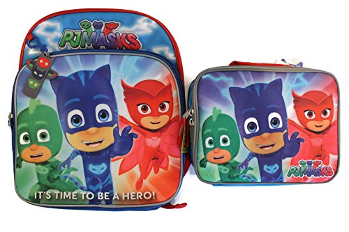 -. Brand : Spider-Man -. Color : Blue -. Department : boys -. EAN : 0721767337207 -. Feature : Backpack measures 14" x 12"x 4.5" / Backpack has a roomy main compartment, large front zippered pocket and 2 side mesh pockets / Backpack has padded adjustable straps for a more comfortable fit / Lunch box has a padded handle -. ProductGroup : Apparel -. ProductTypeName : LAGE -. Size : 14" -. Title : Disney Junior PJ Masks Backpack & Lunch Box Set -. UPC : 721767337207