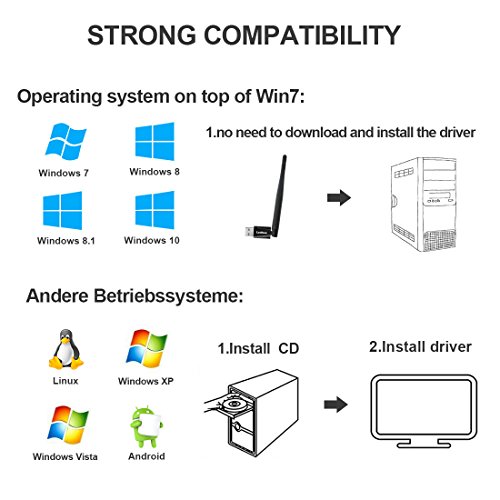 Easy Setup Just plug in the adapter to get connected for Windows system later than windows 7, no need to download and install the driver. For the other systems, should download the driver from the included set up CD and install, then plug in the adapter to get connected after installation.