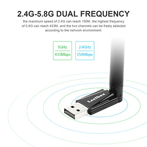 Studio : Leelbox Publisher : Leelbox Binding : Electronics Product Description Dual Band AC600Mbps Technology The 5.8GHz/433Mbps better for HD video streaming and online gaming, while 2.4G/150Mbps enough for web surfing and online chatting. 5.8GHz mode stands out within short range, the signal will be stronger if the dongle near your router. 2.4GHz band mode will be better when it's in a long distance.