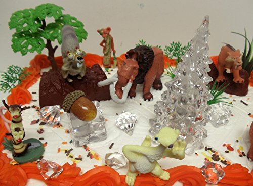 ICE AGE Cake Topper Featuring Crash, Eddie, Ellie, Scrat, Manny, Sid and More, Set Includes All Accessories Shown, Figures Range From 2 3/4 to 1 1/2 Inches tall