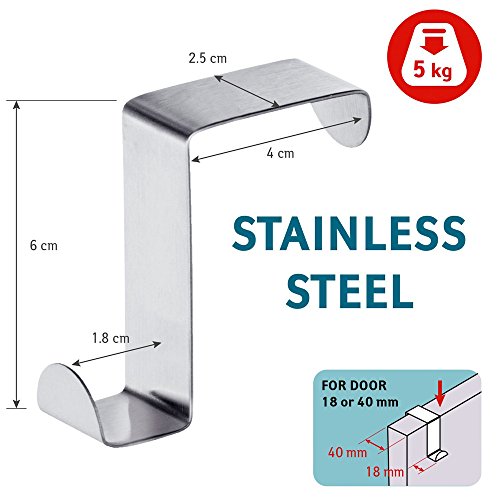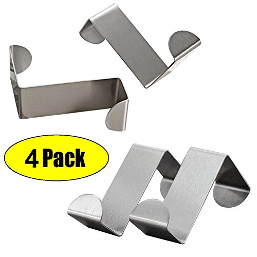 Mziart Pack of 4 Stainless Steel Reversible Over Door Cabinet Drawer Hooks Office Kitchen Towel Coat Hooks Rack, Silver