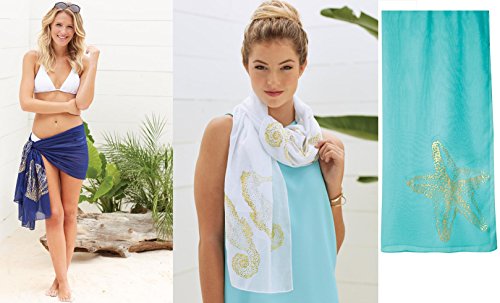 Mud Pie Women's Fashion Resort Wear Shimmer Sea Life Sheer Scarves