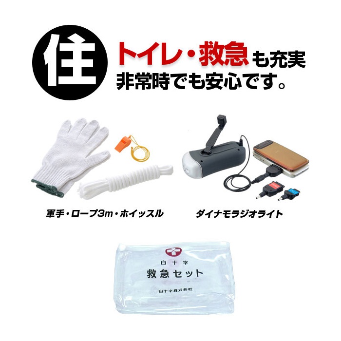 마스크×2개,방재 체크 리스트,목장갑,whistle,로프3m,
