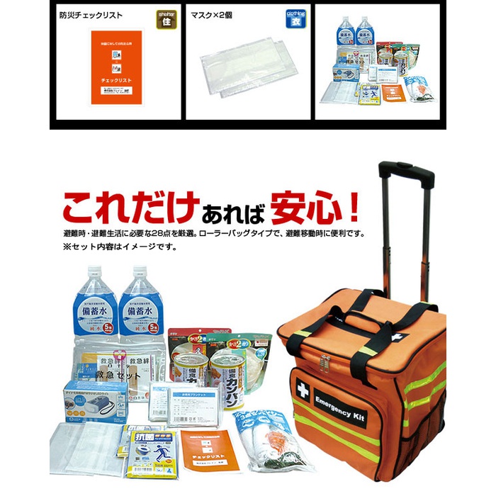 재해 피난시에 편리한 캐리 백형 방재 용품 세트