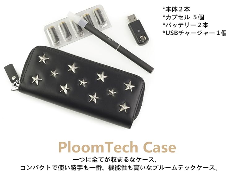 - 2本収納できるな手帳型ploom tech 専用 ケース、コンパクトで必要な付属品を全て入れることができる大きさが魅力です。