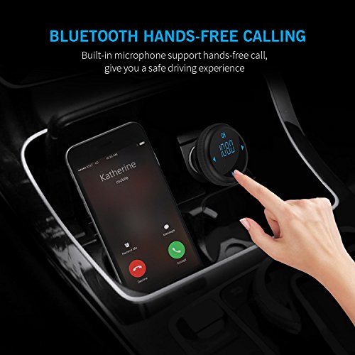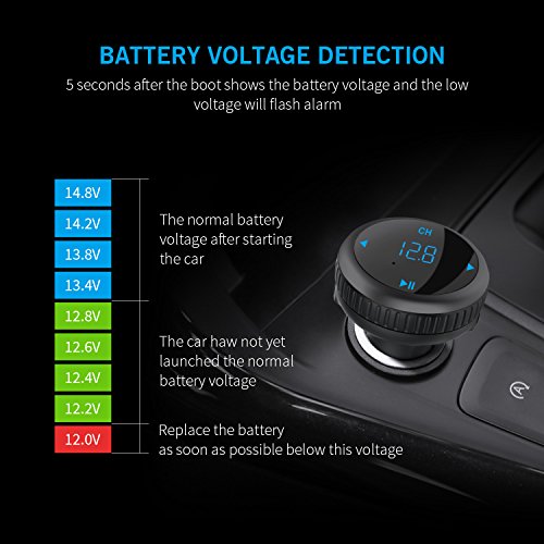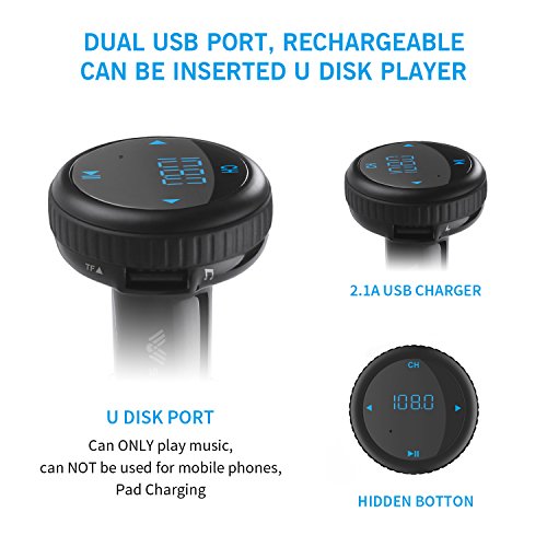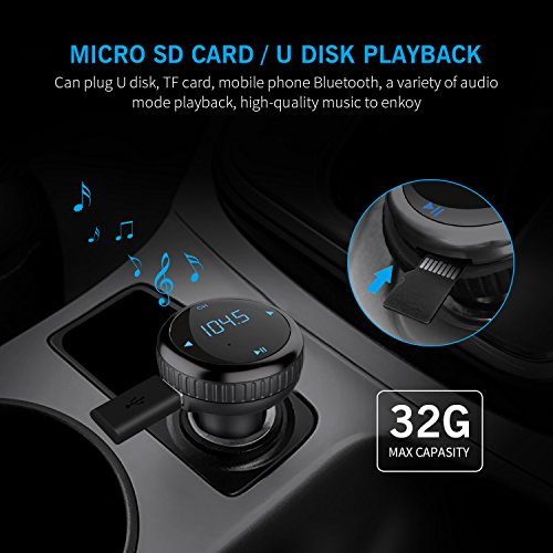 【BROAD COMPATIBILITY】Bluetooth In-car FM Transmitter works with most Bluetooth enabled devices, such as iPhone, iPad, Samsung, Galaxy S7 S8 and more.You can also insert U disk or micro SD card to play the MP3 file. Support : Bluetooth, TF card, USB flash drive .