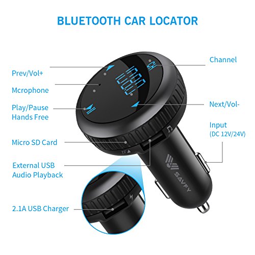 Bluetooth FM Transmitter,SAVFY GPS Car Finder Locator,App Support,Wireless In-Car Radio Adapter Car Kit with USB Car Charging for ipone8,iPhone7plus,Samsung,Galaxy7S/8S,LG, HTC, Sony,Huawei,Black