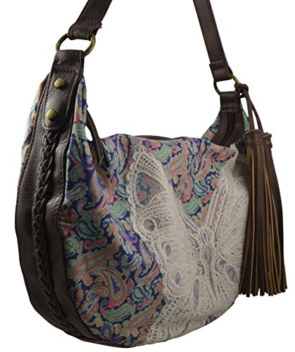 -. Title : Women's / Girls Hippy Hobo Tote Multiple Designs on Canvas / Faux Leather Material Handbag