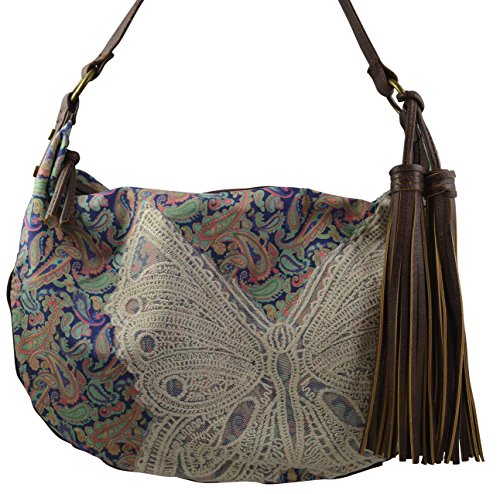 -. Feature : Most designs of Tote-Purse have top zip closure and shoulder strap that are adjustable up to a 25 in drop / Interior is lined with fabric. Multiple designs like butterfly, Moon, Owl, Floral, Elephant in different materials canvas, faux leather & suede finishing! / Made of canvas material or Faux leather and finishing in delicate lace. / Antique gold metal wares / Perfect gift hobo hippy bag to choose your favorite design between elephant, owl, moon, floral, butterflies etc.