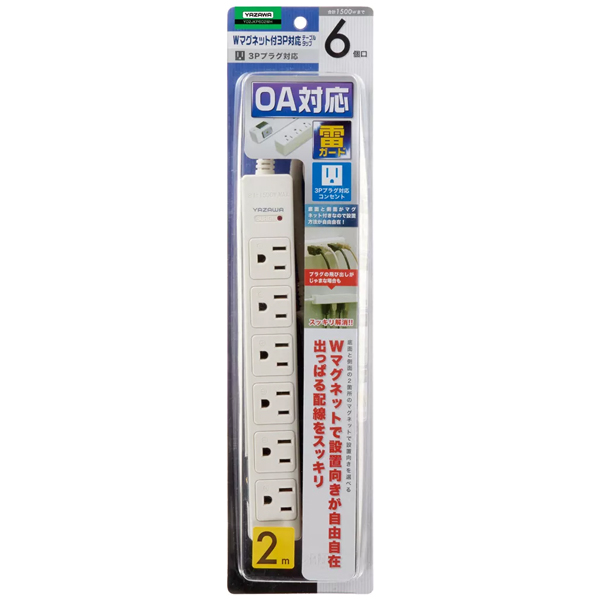 ●ヤザワ Y02JKP602WH 3Pマグネットタップ 6個口 2m 白