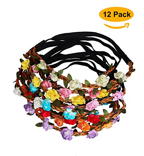 Feathers: 1. Set of 6 or 12 Solid Color Bohemian Flower Crown Floral Garland Headbands. Great Variety Of Solid Colors To Match Your Outfit. 2. These hair bands are stretchable and elastic band diameter fits most heads, it is very comfortable to wear. 3. When wearing it, you can easily catch people's eyes. 4. Comes with many colours, very simple and nice style. 5. Easy to put on and creates a instant stunning new hair style. 6. Beautiful for weddings, bridal, bridesmaids, festivals, etc.