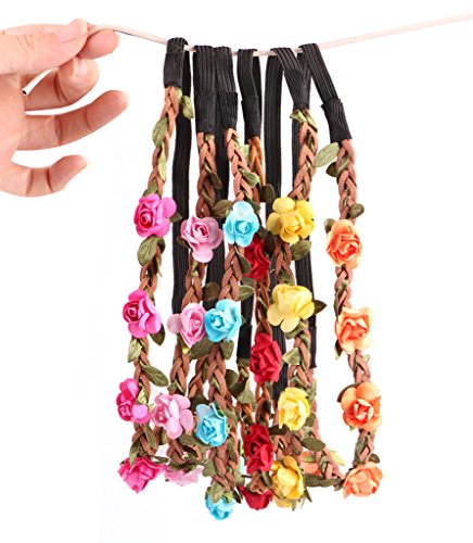 Note: Material: Paper(petals) Polyester(leaves), Man-made Leather(plaited headband) Spandex(adjustment) Color: 12 colours for choice, but we'll send randomly for the 6 pack. One size fits most: Newborns, Toddlers, Baby Girls,Little Girls, Big Girls, Women Etc.