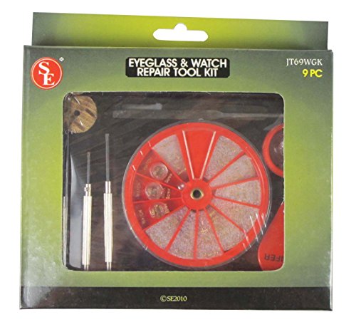 Studio : Sona Enterprises Publisher : Sona Enterprises Binding : Tools Home Improvement Product Description Next time your glasses fall apart, you can resist panicking, knowing that you have the SE JT69WGK Eyeglass and Watch Repair Tool Kit, 9-Piece nearby. Feel safe because it has everything that you'll need to put back together your glasses, watch, or any other small mechanical devices. This Eyeglass Watch Repair Tool Kit includes tweezers, wooden glass holder, flat file, 5x loupe, nose pads, (3) precision screwdrivers, and (250) different screws to meet your needs. Get it today and know that you'll have what you need when you need it. SE is committed to providing the customer with the best source for value possible on the market. You will enjoy the quality, function and usefulness of our SE JT69WGK Eyeglass and Watch Repair Tool Kit, 9-Piece. IPR Rights Notice: Important: Avoid getting counterfeit items. Genuine SE products come with the SE logo on the packaging. SE is a registered trademark protected by US Trademark Law. 0