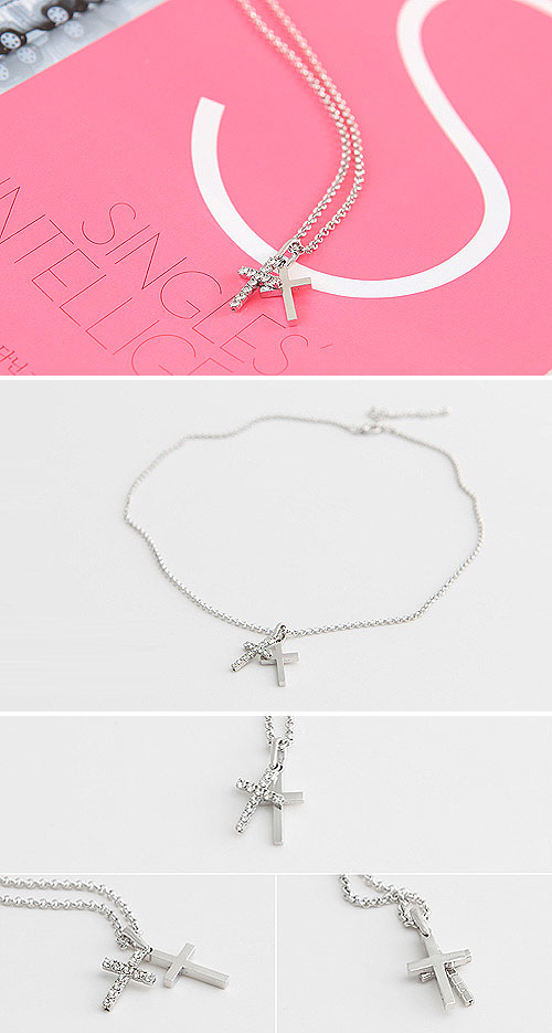 韓国スター・アクセサリー SUPER JUNIOR(スーパージュニア)のウニョクst ダブル クロス ネックレス NECKLACE