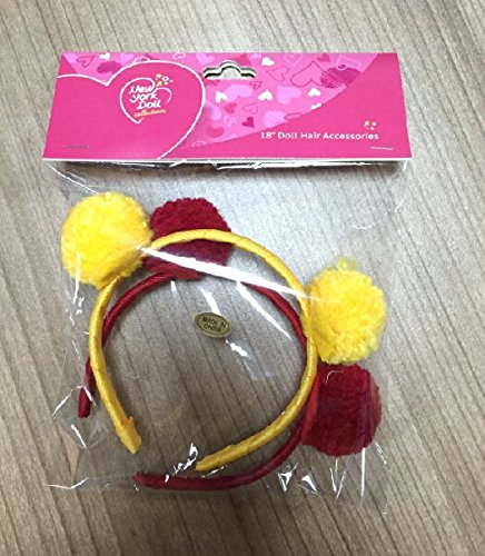 - Pretty Yellow and Red Pom Pom Headbands are the perfect hair accessory for 18 inch dolls