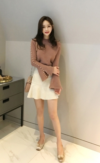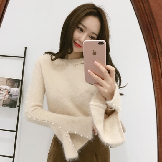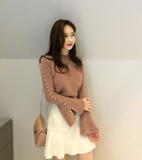 袖のパールがオシャレ♪モヘアの可愛いニットです。